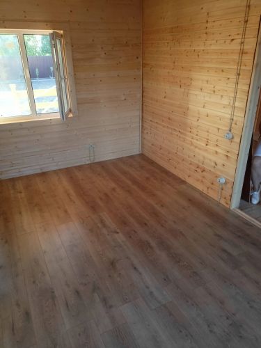 Постелим на выровненное основание пола подложку. Положим ламинат. Работу выполним за 6–8 часов в зависимости от площади пола. Будет шумно и пыльно. Цена за укладку ламината от 20 кв. метров.